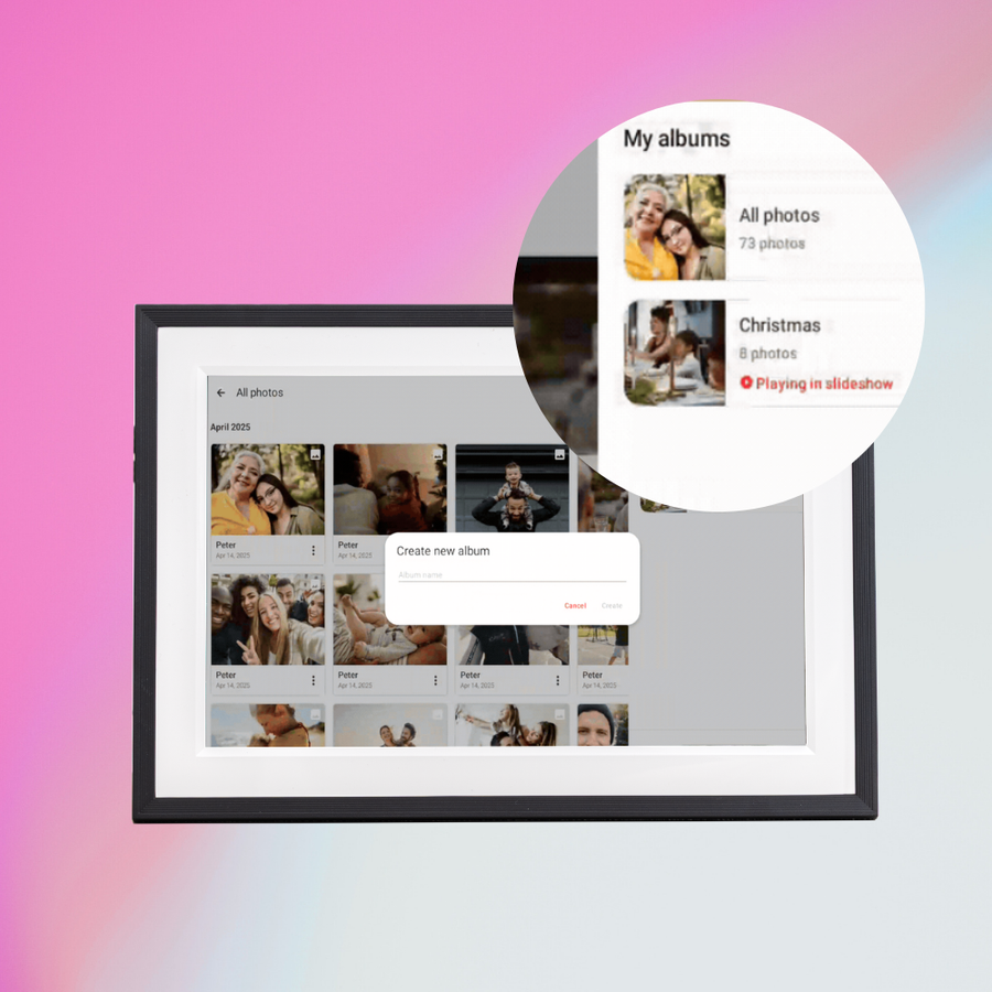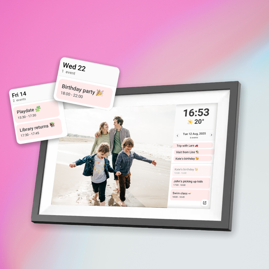 Built-in calendar feature (NEW)Sync your calendar and display events alongside photos. Stay organised and connected with what matters most, all in one place.