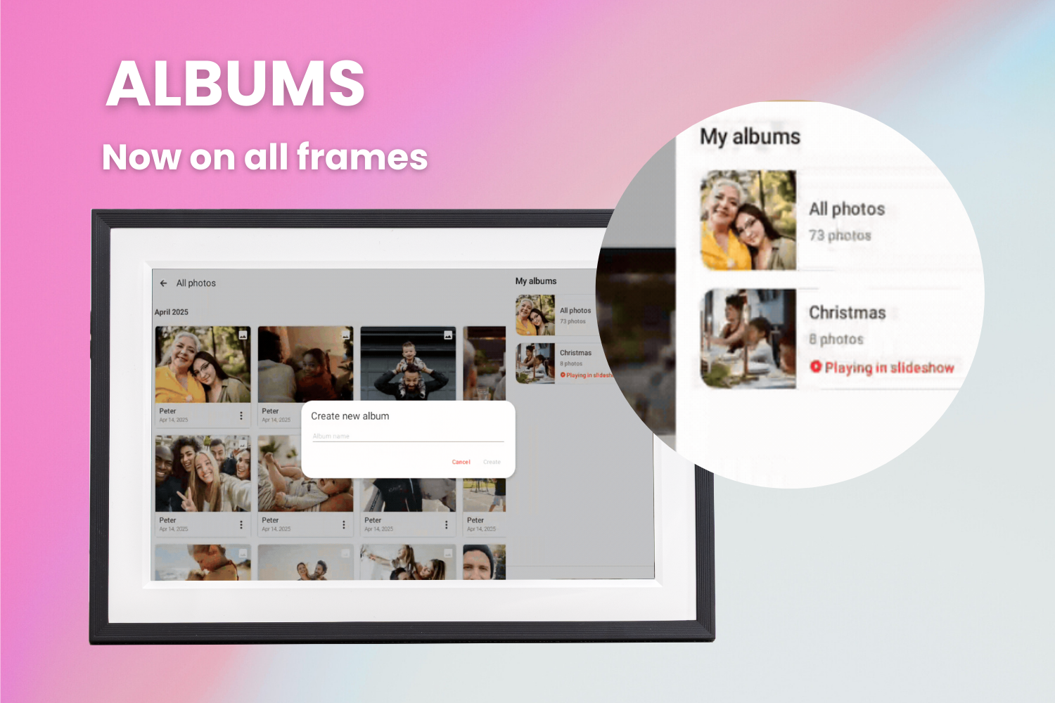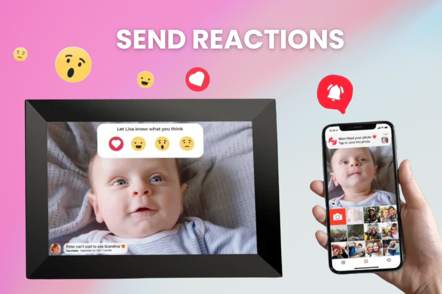 Send photos & short videos right from the Frameo app to the Frameo frame
